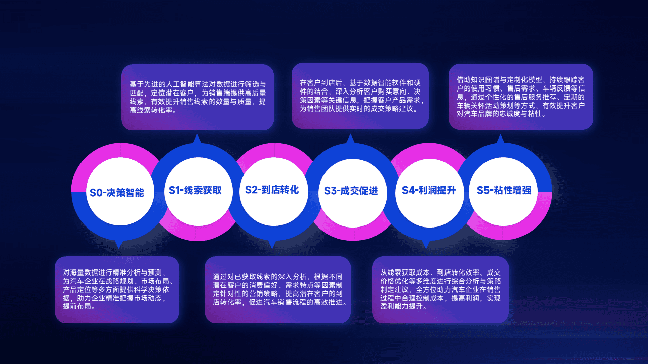 通过拓宽潜在客户来源、、优化线索分配并提高到店转化率,,,,以增强销售效率。。同时,,,,利用线索数据不断优化分析模型,,有效提升转化率,,扩大营销影响力。。。
